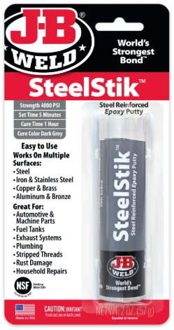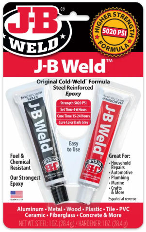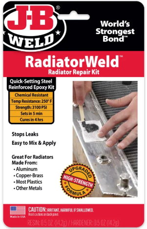 Fém jármû hûtõ és mûanyag tartály javító epoxy készlet. Mûködik aluminium, vörösréz, sárgaréz és egyéb fémeken, illetve kemény mûanyagokon. Mindenféle kemikáliának ellenáll. +121 Celsius fokig hõálló Kiváló kötéserõsség: 3100 PSI ! 5 percig alakítható. 4 óra alatt köt meg teljesen. |
